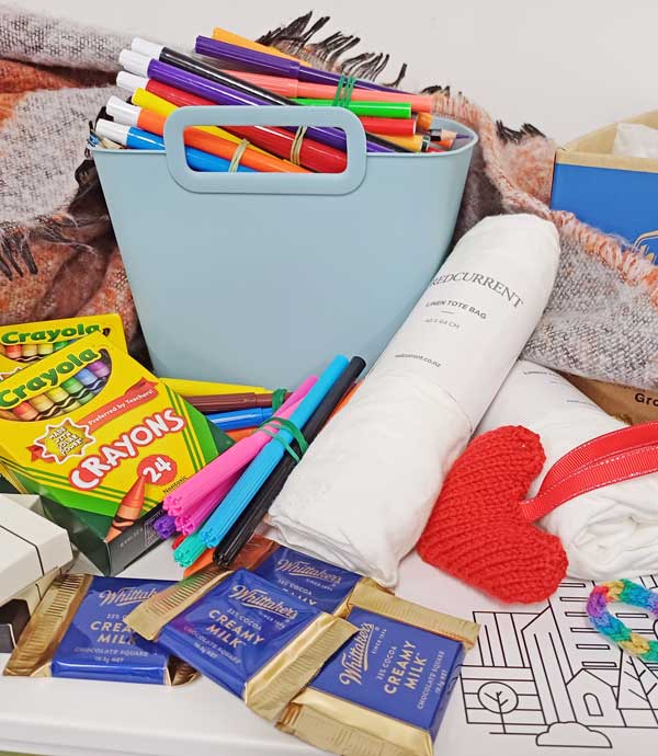 - Treats – e.g. chocolate, sweets, hot chocolate sachets, calming teas (must be sealed)