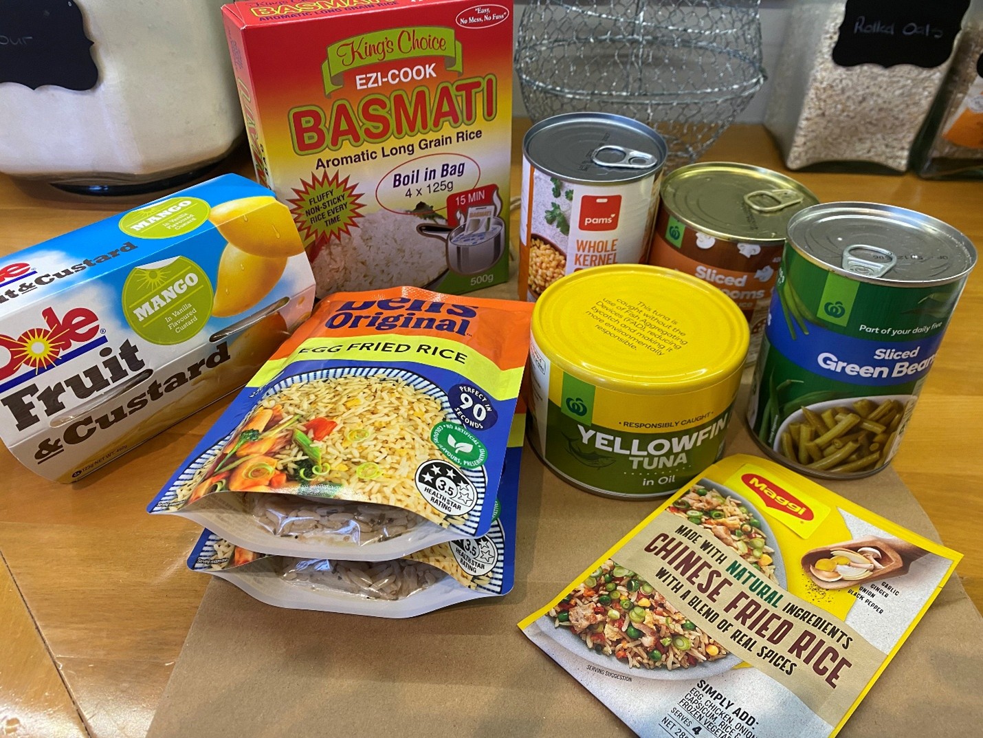 - Instant food packs (mi goreng, risotto, soups, etc.)